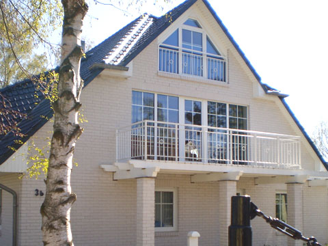 Zur Ferienwohnung gehört ein PKW-Stellplatz unmittelbar am Haus und ein großer Balkon.