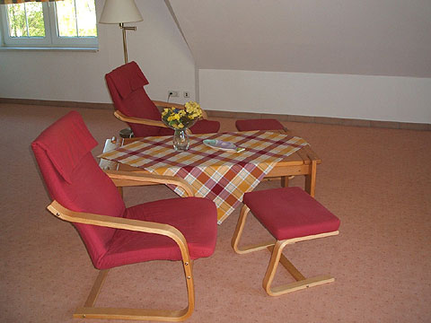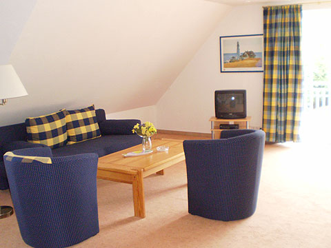 Die Ferienwohnung A-5 befindet sich im Obergeschoss des Hauses "Arkona" und bietet Unterkunft für bis fünf Personen.